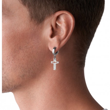 Boucle d'oreille Diesel Homme en acier argenté Motif croix