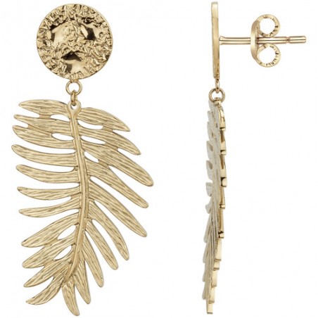Boucle d'oreilles Pendantes Femme - Amporelle - En Acier - Motif Feuille Dorée