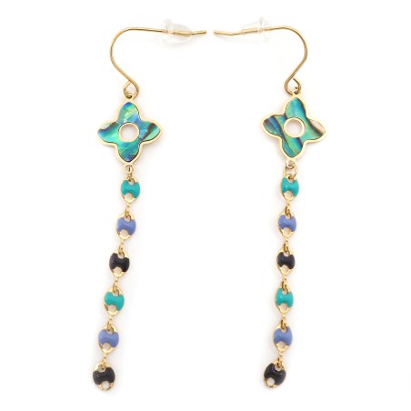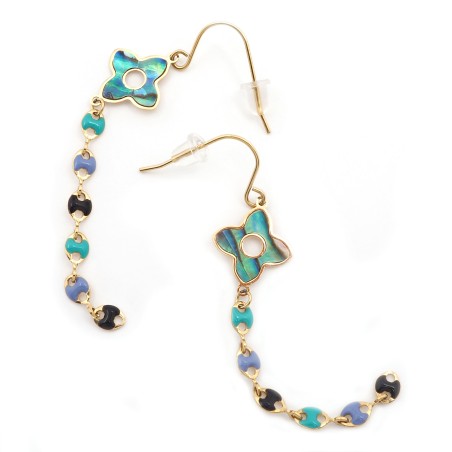 Boucles d'oreilles Amporelle Acier doré - Col de cygne Fleurs et Grain de café multicolores