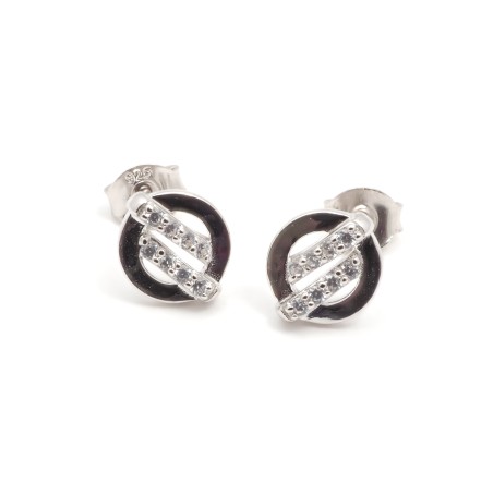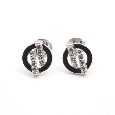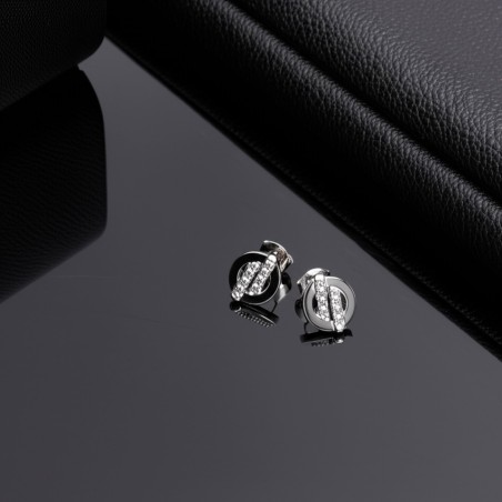 Ces boucles d'oreilles sont en argent 925/000 rhodié, elles se composent d'un cercle avec deux barettes ornés de cristaux d’oxydes de zirconium au centre.