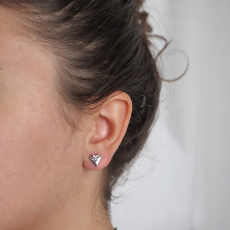 Ces boucles d'oreilles sont en argent 925/000 rhodié, elles se composent de deux triangles dont un orné de cristaux d’oxyde de zirconium.