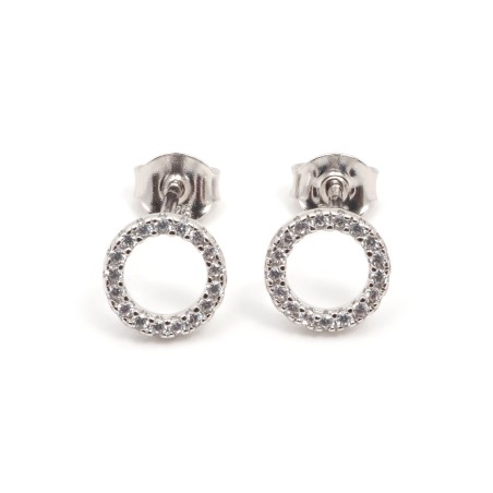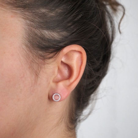 Ce modèle en argent 925/000 rhodié, se compose d'un motif rond ornée de cristaux d’oxyde de zirconium.