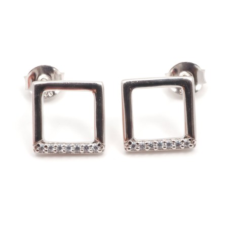 Ces boucles d'oreilles sont en argent 925/000 rhodié, elles se composent d'un carré orné de cristaux d’oxyde de zirconium sur sa partie basse.