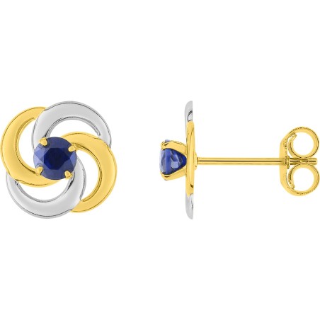 Boucles d'oreilles Carador clous bicolore et saphir serti 4 griffes en or 375/000