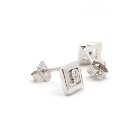 Ces clous d'oreilles sont en or blanc 750/000, révélant un diamant de 0.02 cts au centre du carré. Minimalistes et graphiques, ces boucles d'oreilles, dotées d'une poussette papillon, sont LE bijou que l'on aime porter au quotidien.