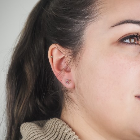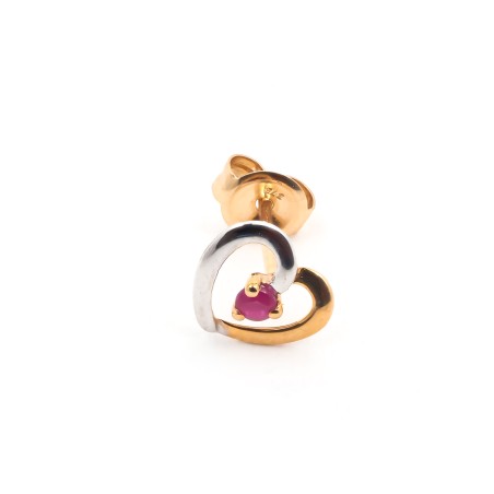 Boucles d'oreilles Carador cœur bicolore or 375/000 et rubis 0,15 cts