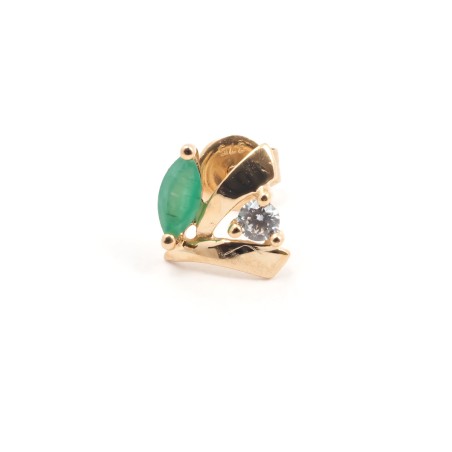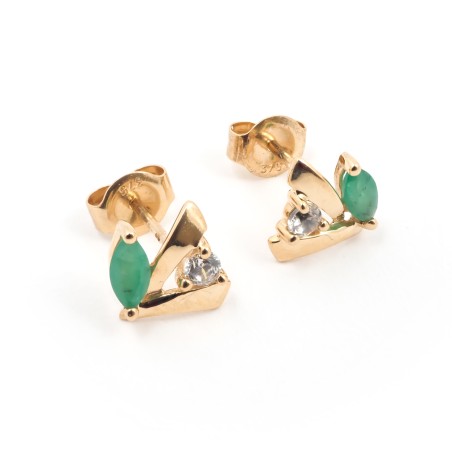 Boucles d'oreilles intemporelles proposées par Carador, en or jaune 375/000 (9 carats), une émeraude et un oxyde de zirconium. Un bijou fin, gracieux qui vous plaira pour sa discrétion et sa féminité.