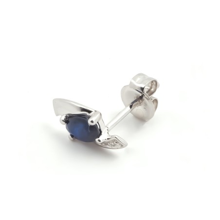 Un bijou de qualité et très élégant pour les femmes qui aiment les boucles d'oreilles en or. Cette paire de boucles d'oreilles puces est en or blanc 9 carats, et ornée d'un diamant et d'un saphir.