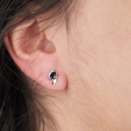 Boucles d'oreilles Carador or blanc 375/000 Diamant et Saphir
