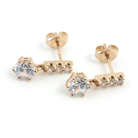 Boucles d'oreilles Carador pendantes fantaisie or jaune 375/000 et oxydes de zirconium 2,12 cts