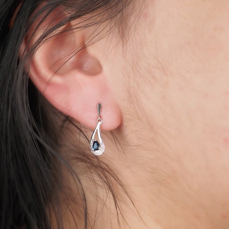 Boucles d'oreilles Carador Pendantes or blanc 375/000 et saphir