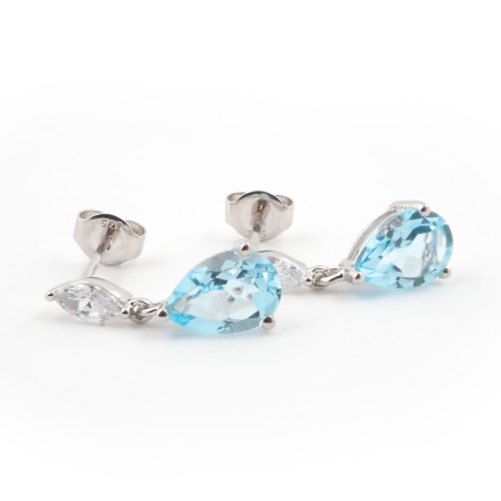 Boucles d'oreilles Carador pendantes or blanc 375/000, topaze et zircon