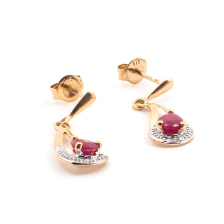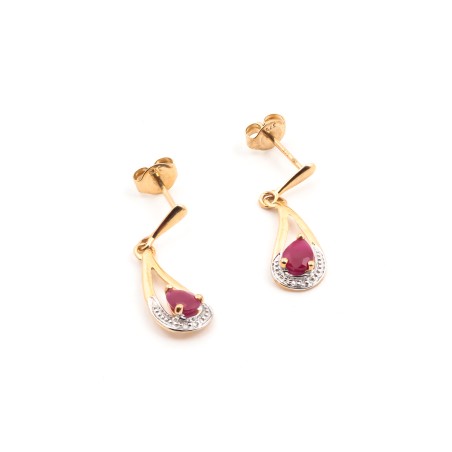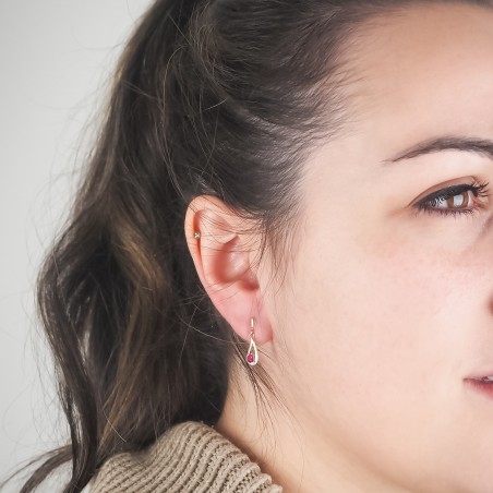 Boucles d'oreilles Carador pendantes or jaune 375/000 et Rubis