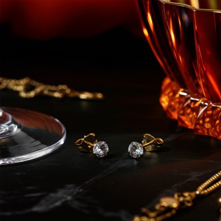 Ces boucles d'oreilles solitaires sont en or jaune 375/000, elles sont dotées d'un oxyde de zirconium de 4 mn