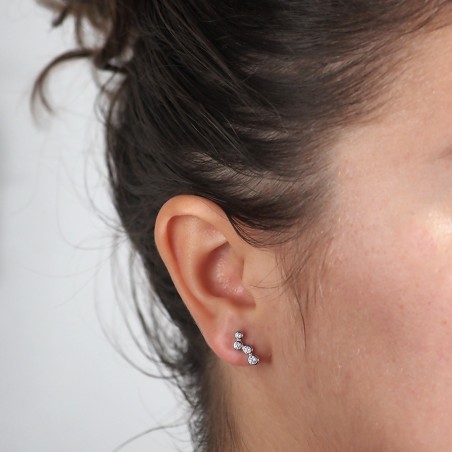 Boucles d'oreilles clous Carador en argent et 4 oxydes de zirconium sertis clos
