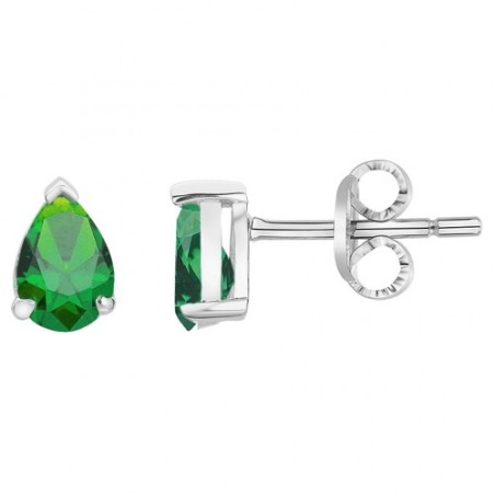 Boucles d'oreilles clous Carador en argent et oxyde de zirconium vert serti 3 griffes