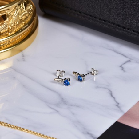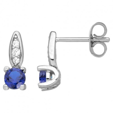 Boucles d'oreilles clous Carador en argent et oxydes blanc et bleu