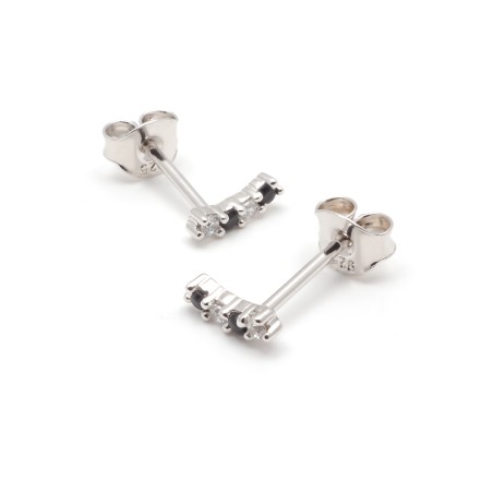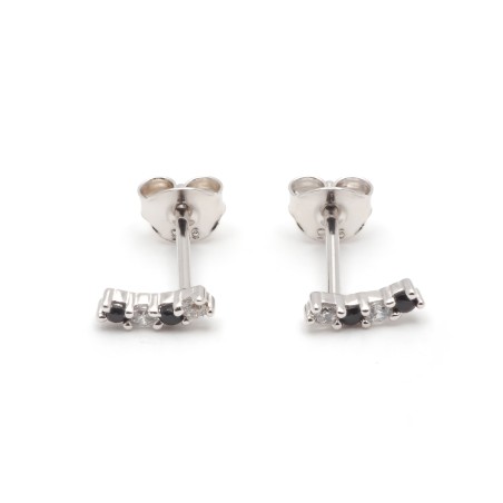 Boucles d'oreilles clous Carador en argent et oxydes de zirconium blancs et noirs intercalés forme barrette