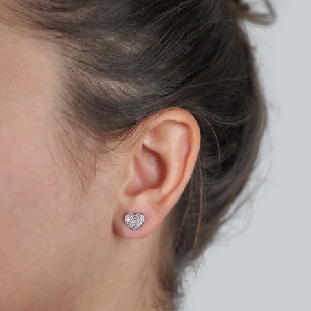 Boucles d'oreilles Clous Carador en argent et oxydes de zirconium motif coeur