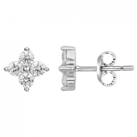 Boucles d'oreilles clous Carador en argent et oxydes de zirconium motif fleur