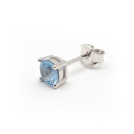 Boucles d'oreilles clous Carador en argent et spinelle bleu clair serti 4 griffes