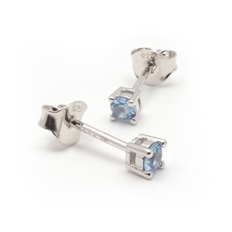 Boucles d'oreilles clous Carador en argent et spinelle bleu topaze serti 4 griffes