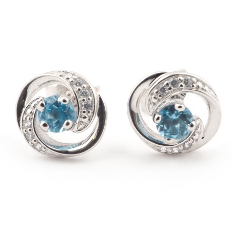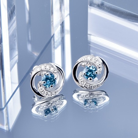Boucles d'oreilles clous en or blanc 375/000 et topaze