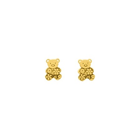 Boucles d'oreilles clous en or jaune 750/000 motif oursons fleuris