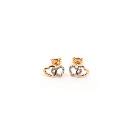 Boucles d'oreilles clous femme carador en or jaune 750/000 et oxydes de zirconium motif cœurs