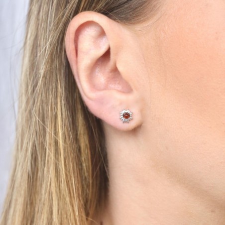 Boucles d'oreilles Clous Femme en Argent 925/000 argenté avec Ambre couleur cognac