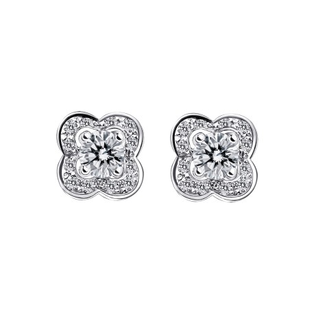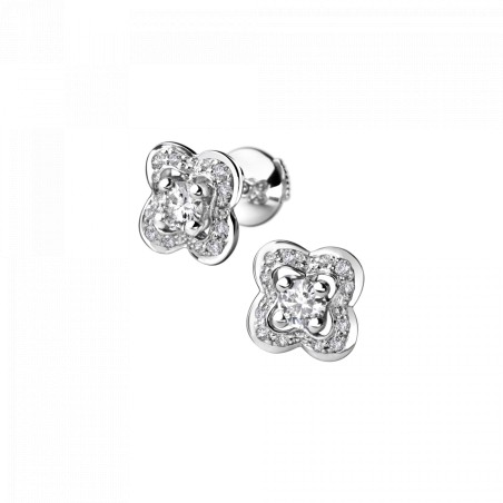 BOUCLES D'OREILLES CLOUS FEMME MAUBOUSSIN "CHANCE OF LOVE" EN OR BLANC 750/000 ET DIAMANTS