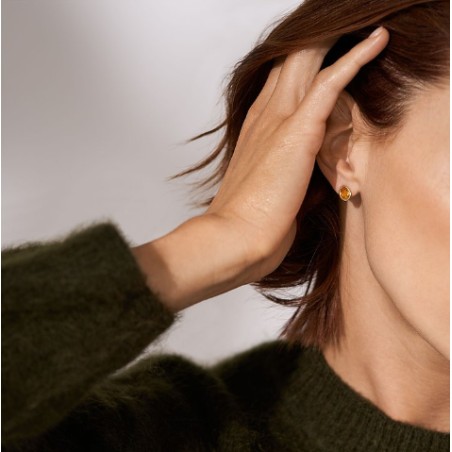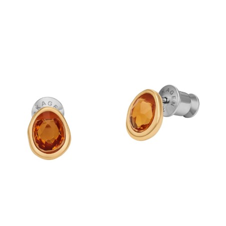 Boucles d'oreilles Clous Femme Skagen Sea Glass en acier doré avec pierres brunes