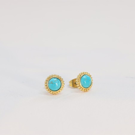 BOUCLES D'OREILLES CLOUS FLOWERS FOR ZOE ELEANOR EN ARGENT DORE ET TURQUOISE