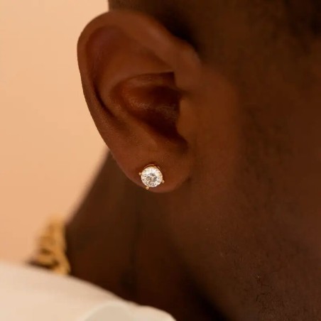 Boucles d'oreilles Clous Homme Phebus Acier doré et Oxyde de zirconium incolore sertie de 4 griffes