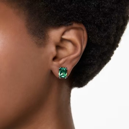 Boucles d'oreilles clous Swarovski Matrix en acier doré et cristal vert