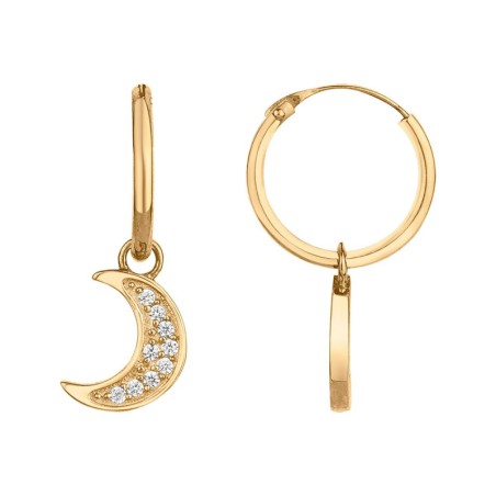Boucles d'oreilles Créoles Carador Femme en Plaqué or et Oxydes de zirconium pampilles lune