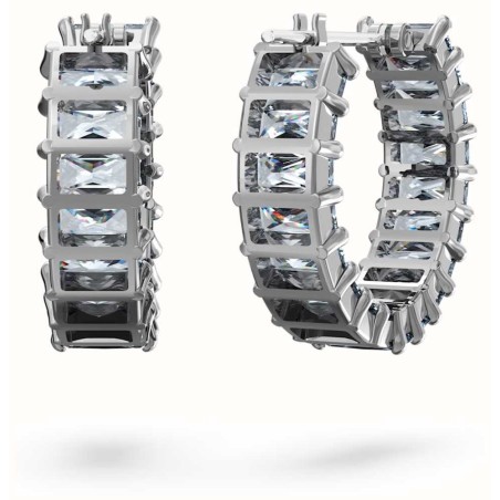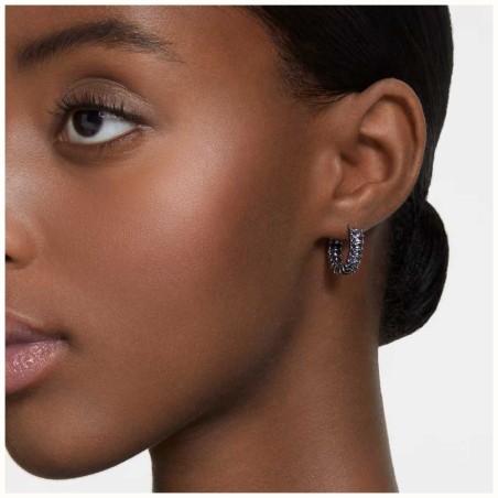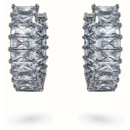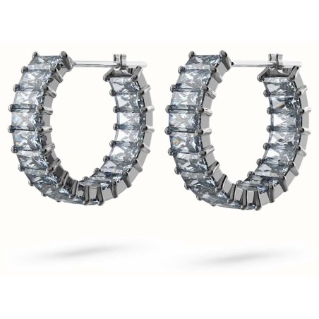 Boucles d'oreilles créoles fantaisie Swarovski femme métal argenté avec cristaux gris collection Matrix