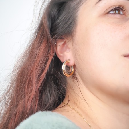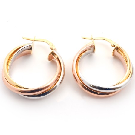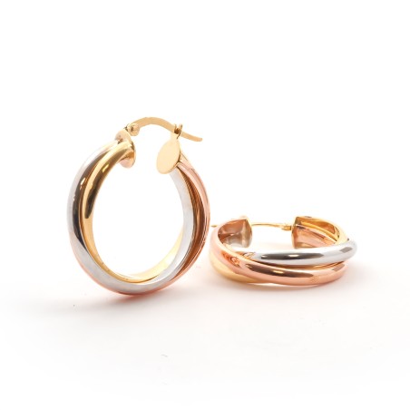 Boucles d'oreilles créoles femme carador en or 375/000 tricolores