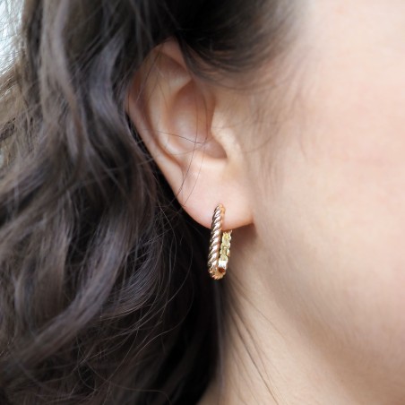 Boucles d'oreilles Créoles rectangulaire fantaisie - Carador - Plaqué or - Femme