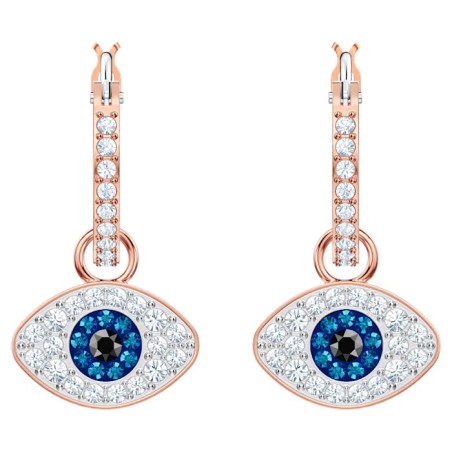 Boucles d'oreilles créoles Swarovski Symbolic en acier doré rose et cristaux bleus et blancs