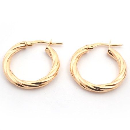 Boucles d'oreilles créoles torsadées femme carador en or jaune 375/000 fil 3mm