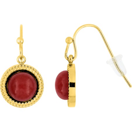 Boucles d'oreilles Crochets Amporelle en acier doré et rubis synthétique