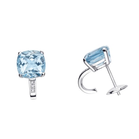BOUCLES D'OREILLES DEMI CREOLES FEMME MAUBOUSSIN "PETIT VISAGE D'AMOUR" EN OR BLANC 750/000 TOPAZE BLEUE ET DIAMANTS