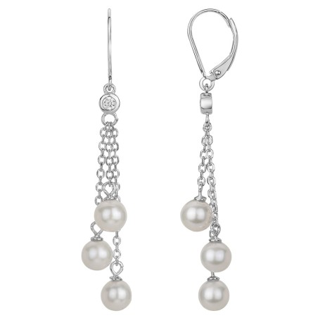 Boucles d'oreilles dormeuses Carador en argent oxydes de zirconium et pampille perle d'eau douce