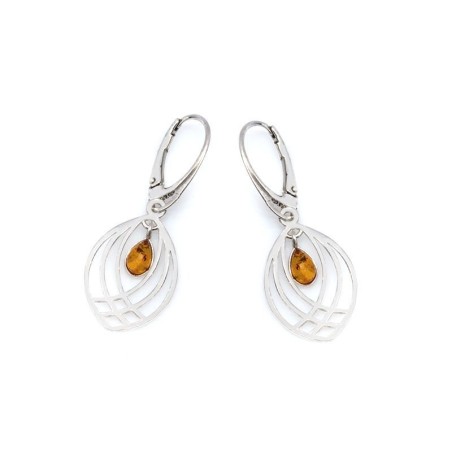 Boucles d'oreilles Dormeuses en Argent 925/000 avec Ambre marron ovale