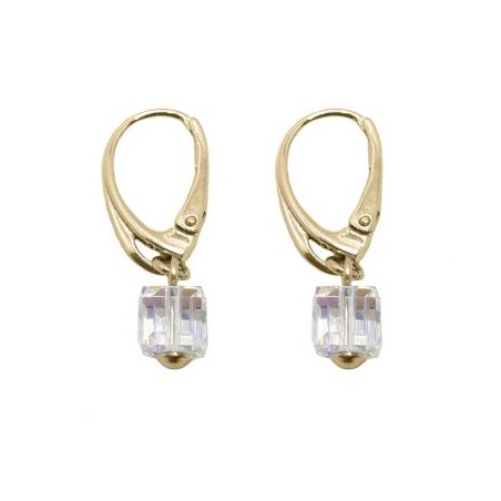 Boucles d'oreilles dormeuses Femme Indicolite Argent 925/000 doré et Cristaux blancs