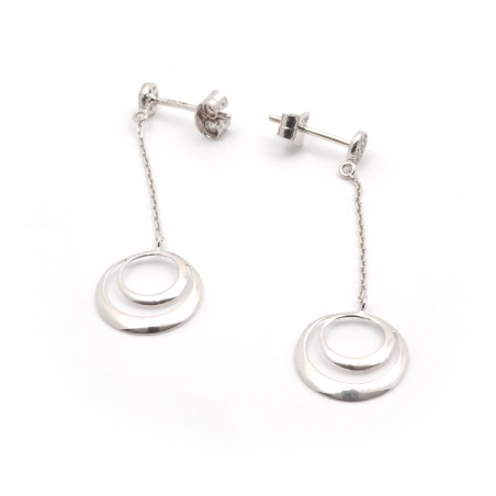 La paire de boucles d'oreilles double cercles suspendus Carador est issue de la collection or 375/000. Ces boucles d'oreilles sont en or blanc.