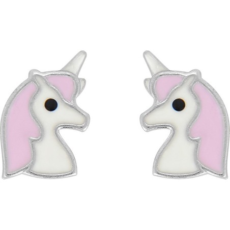 Boucles d'oreilles enfant Carador argent 925/000 LICORNE ROSE ET BLANC
