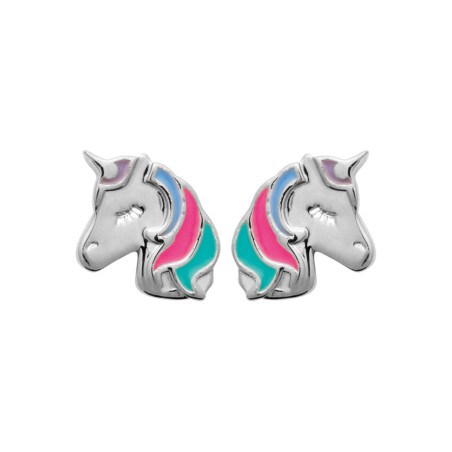 Boucles D'oreilles Enfant - Carador - Argent rhodié email, Motif Licorne