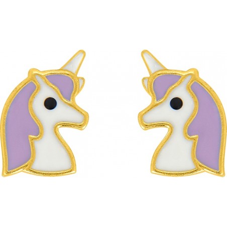 Boucles d'oreilles Enfant Carador Plaqué Or - licorne violette et blanche